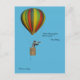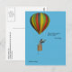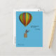 La carte présente un homme voyageant en montgolfière à la recherche de nouvelles destinations à l'aide d'un télescope.