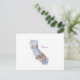 Art voyage en Californie. Carte d'état de l'aquarelle bleue avec de beaux détails métalliques or.