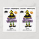 Cette jolie carte postale d'Halloween est conçue pour être découpée facilement en deux cartes. L'image est celle d'un panneau "Happy Halloween" avec un casquette de sorcière rayé d'or et noir et des jambes de sorcière à bas vert avec des bottes noires. Une petite araignée noire est accrochée à côté de l'image. Parfait pour les élèves du primaire à donner à leurs amis à leur fête d'Halloween de l'école, et économique, aussi! Et les enseignants peuvent aussi la customiser pour donner aux élèves aussi !