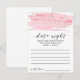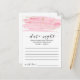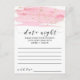 Cette carte d'idée de nuit rose et or est l'activité idéale pour une réception de mariage romantique ou une douche nuptiale. Le design féminin luxueux est doté d'une texture d'aquarelle rose pâle avec un éclat de poussière de parties scintillant en faux or et une police de script de calligraphie élégante. Remarque : Ce design ne comporte pas de véritable parties scintillant en or. C'est un graphisme de haute qualité fait pour ressembler à l'or pétillant.