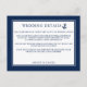 Postale Carte d'insertion de détails de mariage bleu ancre