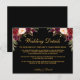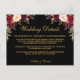 Carte d'insertion de détails de mariage à l'aquarelle burgundy floral, noir et or
