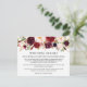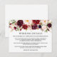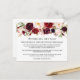 Carte d'insertion de détails de mariage élégants et modernes en aquarelle bordeaux avec des roses bordeaux, des roses roses, des roses rouges et de la verdure botanique.