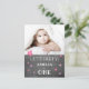 Cute Chalkboard rose 1er anniversaire Invitation Card pour une petite fille. La carte a de jolies étoiles roses sur l'avant et sur l'arrière et une texture de tableau noir. Ajoutez votre photo dans le modèle et personnalisez la carte avec vos détails.