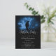 Carte d'invitation d'anniversaire avec une image d'un corbeau noir la nuit perché sur une branche d'arbre avec des runes au-dessus qui dit "corbeau noir". Ambiance sombre et mystérieuse.