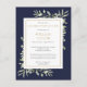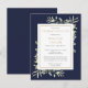 Une carte postale d'invitation de célébration de vie personnalisée élégante avec feuillage de verdure aquarelle botanique sur fond bleu marine. Conçue par Thisisnotme©