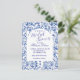 Personnalisez cette belle carte d'invitation de mariage bleu et blanc en style chinoiserie.