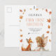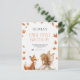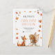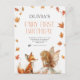 Carte d'invitation pour le premier anniversaire de la fée d'automne avec un renard et une fée avec des ailes et des feuilles d'automne
