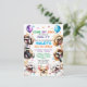 Cartes d'invitation d'anniversaire pour chien. 5 ans (ou modifier pour n'importe quel âge). Pour garçon ou fille. Illustration d'un chiot heureux et souriant, conçue avec des confettis et des ballons entourés de races de petits chiens populaires telles que shih tzu, carlin, maltais, chihuahua, caniche et beagle. Tous les textes sont modifiables : nom de l'enfant, âge, heure de la fête, adresse et RSVP.