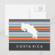 Design moderne de la carte du Costa Rica en blanc et texte personnalisé, célébrer votre fierté Costa Rica. Arrière - plan en rayures ; bleu, gris, orange et blanc.