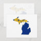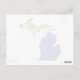 Il n'y aura aucune erreur dans votre fierté d'état quand les gens voient la forme de l'état des grands lacs du Michigan et son nom clairement affiché dans le texte jaune à l'intérieur de la péninsule supérieure avec un arrière - plan bleu foncé sur cette carte postale. N'importe quel Yooper devrait l'aimer.