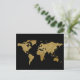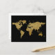 Postale carte du monde noir doré