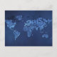 Postale Carte du monde typographique (Nuit)