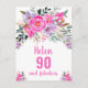 Elégante carte 90ème anniversaire avec un design floral d'aquarelle rose. Personnalisez avec votre nom et votre texte.