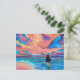 Envoyez un peu d'Aloha ou dites Mahalo avec cette carte de coucher de soleil colorée avec Hula Girl saluant le matin style hawaïen.