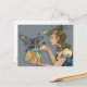 Carte postale sucrée avec fille envoyant une lettre d'amour