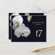 Une belle photo de closeup d'une carte de table mariage de fleurs d'orchidées blanches à utiliser pour vos numéros de tables de réception de mariage. ENTIÈREMENT PERSONNALISABLE.