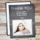 Cute modern birthday thank you postcard to thank your guests. Simple thank you postcard for kids - girl and boy, especially for 1st and 2nd birthday. Personalize the card with your photo and name. You can also change the thank you text and write your own. The text is in trendy and modern white color. The background is the trendy grey chalkboard.
