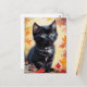 Postale Carte plate de scène d'automne avec chaton noir