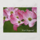 Ces belles fleurs roses de bois de chien ont un centre vert et jaune et sont mis en évidence contre un arrière - plan vert foncé. Les mots, "bois de chien rose" sont écrits en écriture blanche dans le coin inférieur droit de l'image. J'ai pris cette photo dans mon jardin, où cet arbre ancien est suspendu au-dessus de la clôture de mon voisin. Copyright Gail Storrs 2007.
