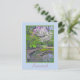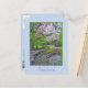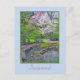 Carte postale avec photo dans Spring of Inniswood Metro Gardens à Westerville, Ohio. Banc sous le redbud et l'arbre avec des fleurs blanches et un petit étang et jardin de roche. Personnalisable .