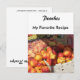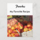 Carte de recette. Image de pêches et autres fruits en pierre exposés. Intitulé "Pêches" Personnalisez le titre de la recette "Ma recette préférée" une fois et il apparaîtra sur le devant et le dos. Écrivez ou collez votre recette pour un plat préféré au dos.