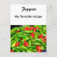 Carte de recettes de poivrons. Image de poivrons rouges et verts dans une pile. Intitulé "Poivrons" Personnalisez le titre de la recette "Ma recette préférée" une fois et il apparaîtra à l'avant et à l'arrière Écrivez ou collez votre recette pour un plat de poivre à l'arrière. ***Partie du set coordonné - bkm3u.
