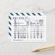 Carte aux lignes bleues, rayures placées sur la surface blanche avec recette rétro arrière - plan personnalisée sur la carte postale avant. Il est customisé avec votre initiale et votre nom.