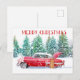 Postale Carte Rouge vintage En Neige