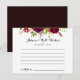 Cette carte de conseil aux mariages floraux bordeaux rustiques est parfaite pour un mariage moderne. Le design est composé de fleurs rose, rousse, rouge, bordeaux et bordeaux à aquarelle avec feuillage vert. Ces cartes sont parfaites pour un mariage, une douche nuptiale, un baby shower, une fête de remise de diplômes et plus encore. Personnalisez les cartes avec les noms de la mariée et du marié, des parents à devenir ou du diplômé.