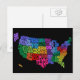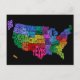 Une carte texte typographique des États-Unis d'Amérique. Chaque état est représenté par son nom, qui est formé pour s'intégrer dans le contour géographiquement correct de l'état. Texte multicolore sur un arrière - plan noir.