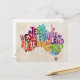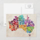 Une carte texte typographique de l'Australie. La carte est faite à partir des noms des Etats et territoires d'Australie, dans un style aquarelle urbain.