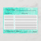Carte turquoise Turquoise Rustic Wood Recette pour la Mariée à être. Stick ces jolies cartes de recettes dans le faire-part de mariage ou Save the Dates pour vos amis et votre famille à remplir et revenir avec le RSVP ou au mariage.