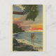 Carte postale rétro / Vintage voyage. Deux belles dames marchant le long d'une plage de Floride au coucher du soleil. Insouciante Floride !
