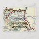Carte postale Sheridan Wyoming, faite avec carte routière vintage de 1955.