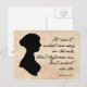"Ce n'est pas ce que nous disons ou pensons qui nous définit, mais ce que nous faisons", cite Jane Austen sur une carte postale. Dispose d'un arrière - plan papier vintage, d'une silhouette Jane Austen et d'une citation manuscrite de Sense and Sensibility.
