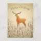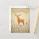 Carte de Noël avec un cerf entouré de feuillage et de flocons de neige. Libellé facultatif au verso avec adresse de retour pour un envoi facile.