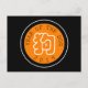 Idéogramme blanc personnalisable de chien avec deux cercles orange et blanc + lettrage noir sur carte postale avec couleur arrière - plan noir personnalisable. Disponible en 6 couleurs. Parfait pour le Nouvel An Chinois du Chien 2018 ou anniversaire (personnes nées dans l'Année du Chien).— "Le Chien (狗) est l'un des cycles de 12 ans d'animaux qui apparaissent dans le zodiaque chinois lié au calendrier chinois. L'année du chien est associée au 戌 du symbole de la branche terrestre. Le caractère 狗 fait référence à l'animal réel tandis que 戌 fait référence à l'animal zodiaque. (...) On peut dire que les personnes nées dans ces plages de dates sont nées dans l'"Année du Chien", tout en portant le signe élémentaire suivant : 14 février 1934 -3 février 1935 = Chien de Bois, 2 février 1946 - 21 janvier 1947 = Chien de Feu, 18 février 198 - 7 février 1959 = Earth Dog, 6 février 1970 - 26 janvier 1971 = Metal Dog, 25 janvier 1982 - 12 février 1983 = Water Dog, 10 février 1994 - 30 janvier 1995 = Wood Dog, 2 9 janvier 2006 - 17 février 2007 = Fire Dog, 16 février 2018 - 4 février 2019 = Earth Dog, 2 février 2030 - 22 janvier 2031 = Metal Dog, 22 janvier 2042 - 9 février 2043 = Water Dog - " Wikipedia