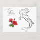 L'ITALIE et ITALIENNE design avec un noir sur la carte blanche de l'ITALIE et petit bouquet de ROSES ROSES ROSES ROSES ROSES ROSES vives avec FEUILLES VERTS.
