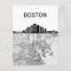 La skyline de la ville de Boston, Massachusetts, y compris les monuments avec la carte de Boston en dessous.