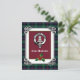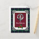 Carte de vacances élégante avec badge écossais Clan Malcolm crest et texte personnalisable, avec cadre saint festif et noeud celtique sur arrière - plan tartan