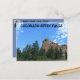 Une photo de la région de Seven Falls avec une montagne, des arbres et un ciel bleu avec des nuages blancs qui est lumineux et coloré. C'est sur une CARTE POST.
