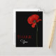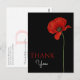 Une façon élégante de dire merci et d'exprimer votre sens personnalisé de gratitude. Personnalisez ce design avec un mot de remerciement personnel pour faire réaliser aux gens que leur gentillesse a été appréciée. Le design est un seul coquelicot rouge sur fond noir. Merci sur le devant et votre propre message au verso.