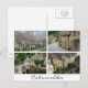 Carte postale avec collage de l'architecture calcaire couleur miel des cottages Cotswolds dans les petits villages comme Tetbury, Castle Combe et Bibury en Angleterre, Royaume-Uni avec une bordure blanche et le texte : 'Cotswolds'. com