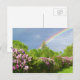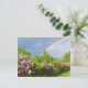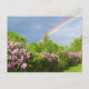 lilas de lavande fleurissant parmi les arbres verdoyants avec une voûte arc-en-ciel magique au-dessus