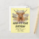 Célébrez un événement spécial avec cette aquarelle rustique de vache des Highlands. Avec une couronne florale fantaisiste et un paysage écossais charmant, ce design comprend un message drôle "C'est ton anniversaire, troupeau". Personnalisez facilement l'âge et le nom pour un effet personnalisé que tout amoureux des animaux de ferme adorera.