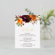 Carte Boho Rustique Mariage floral avec "Détails" en feuille d'or véritable ainsi qu'un bouquet floral aquarelle peint aux tons chauds et terreux d'orange brûlé, de terre cuite et de bordeaux profond et un peu de verdure. Cette élégante carte de mariage avec les riches nuances de l'automne est idéale pour un mariage de automne.