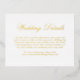 Carte de boîtier mariage en feuille d'or de style traditionnel avec le mot "détails" dans une élégante calligraphie. Utilisez ces cartes d'enclos pour indiquer l'itinéraire et tout autre détail mariage important que vos invités pourraient avoir besoin de connaître, comme l'hébergement à l'hôtel, le stationnement, les informations sur la navette, etc. Cette carte boîtier classique est parfaite pour un mariage formel.