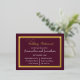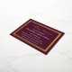 Cette collection chic de mariage présente une collection moderne de tIntroduire notre élégante calligraphie sur la carte de répétition Dark Purple, un complément parfait à votre collection moderne de papeterie mariage contemporaine! Avec son arrière - plan bleu marine captivant et son élégante typographie de script doré, cette carte de répétition offre une belle combinaison de sophistication et de style. Le cadre de bordure géométrique complexe ajoute une touche d'élégance géométrique, ce qui en fait un choix idéal pour n'importe quel thème mariage. Cette carte extraordinaire présente de véritables accents de feuille d'or qui ajoutent une touche d'opulence et de glamour à votre faire-part. Créé avec des techniques classiques pressées, le résultat est une belle carte texturée qui exsumera une finition brillante, laissant une impression durable sur vos invités. Détails du produit : - Enchantant arrière - plan violet marine, combiné à une élégante typographie de script or. - Un cadre géométrique complexe ajoute une touche d'élégance géométrique. - Parfait pour les thèmes mariage contemporains modernes. - De véritables accents dorés créent un look luxueux et opulent. - La technique classique pressée donne lieu à une belle carte texturée avec une finition brillante. Célébrez votre amour et préparez-vous pour le plus important jour de votre vie avec cette carte de répétition élégante. Vos hôtes mariages seront ravis de recevoir cette invitation sophistiquée et élégante, donnant le ton pour la célébration inoubliable à venir. Ajoutez une touche de glamour à votre suite de papeterie mariage avec notre Elegant Calligraphy sur Dark Purple Rehearsal Card aujourd'hui. Customisez votre commande et faites-la uniquement la vôtre, reflétant votre histoire d'amour et votre style personnel. Commandez maintenant et laissez vos rêves d'un mariage parfait devenir une réalité! ypographie de calligraphie. Il a un cadre en or rose simple. Cet ensemble doré à la mode violet est simple mais élégant et tendance.