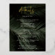 Moody Tropics, carte de détails mariage. Photographie de fronde de palmiers tropicaux foncé. Caractéristiques, typographie blanche et audacieuse. Couleur noire du dos.